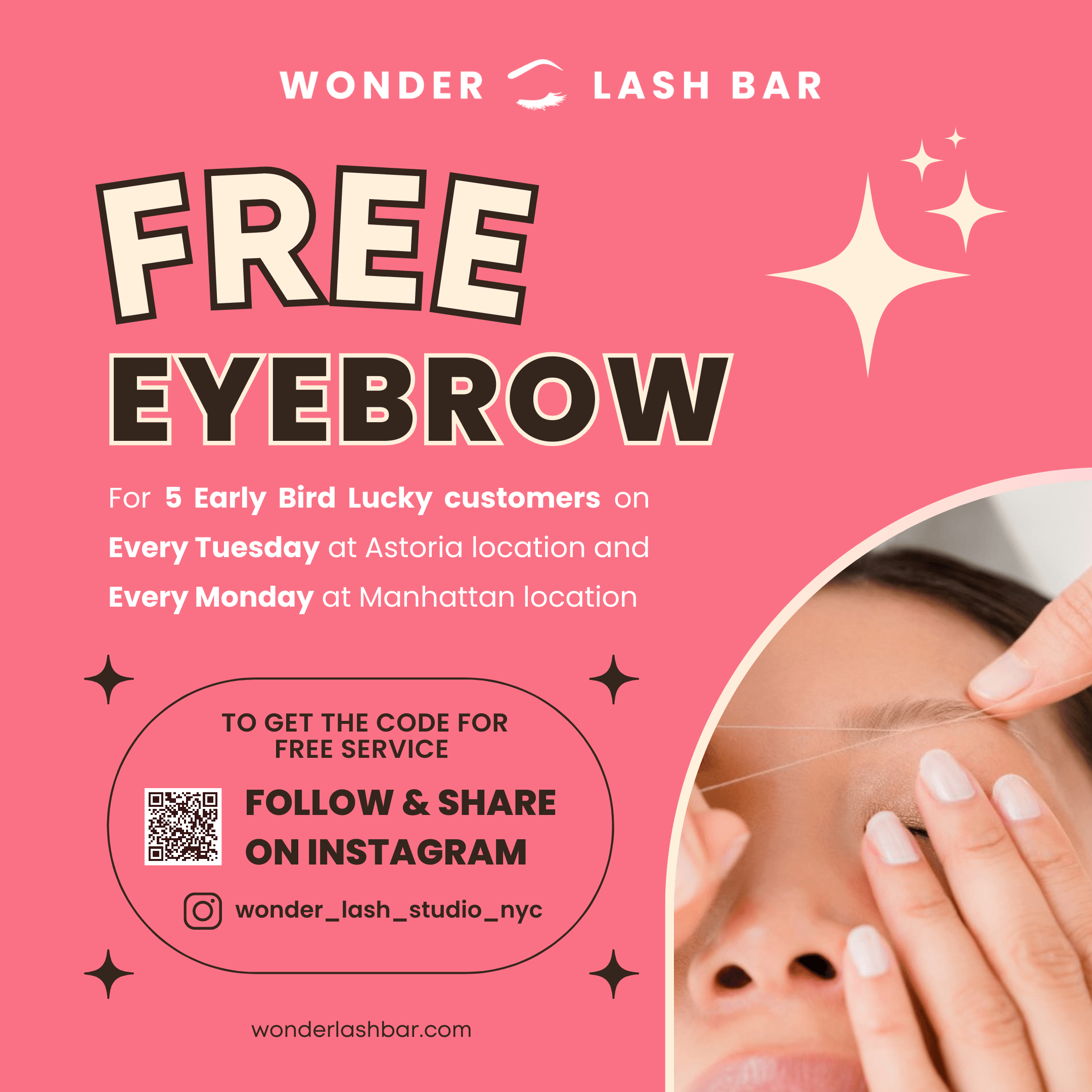 Every Tuesday at the Astoria location and every Monday at the Manhattan location, 5 lucky early bird customers will receive a free eyebrow service.